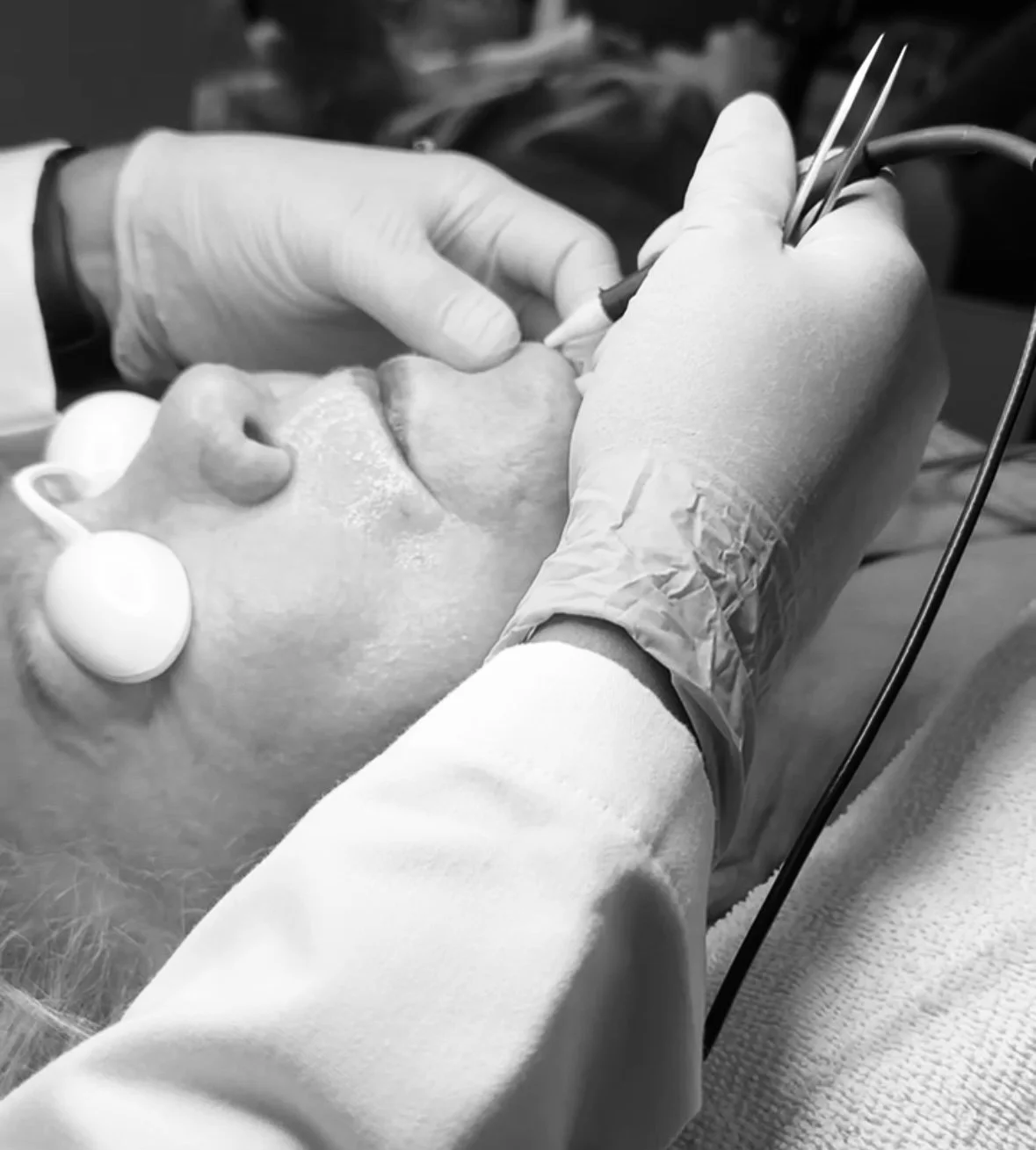 Electrolysis is a method of removing individual hairs from the face and body. Today’s electrolysis devices destroy the growth center of the hair with chemical or heat energy. After a very fine probe is inserted into the hair follicle, the hair is removed with tweezers.